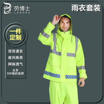 劳博士 雨衣雨裤套装 雨衣交通骑行反光衣劳保防汛分体 荧光绿XXL可定制