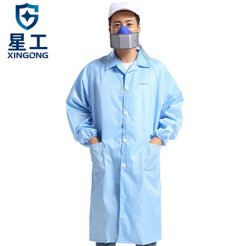 星工(XINGGONG)防静电大褂 无尘防尘工作服 洁净服工衣白大褂定制 蓝色L码XGJ-5