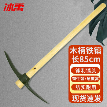 冰禹 BY-348 工业清洁木柄铁镐 铲土镐军绿色铁镐 85cm大军镐 1个