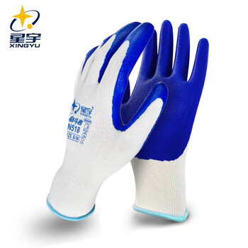 星宇XINGYU劳保手套N518 蓝丁晴浸胶耐磨防油防割防水透气涂胶木工工作防护手套企业专享12副 蓝色*10包 M码