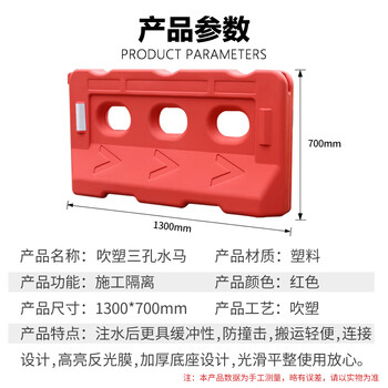 巨成 三孔水马吹塑滚塑塑料隔离板隔离墩护栏组合围栏围挡防撞桶 加重吹塑【1300*700mm】起订量10个