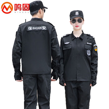鸣固 长袖训练服 保安体能训练服套装 黑色岗亭物业工作制服(上衣+裤子)175/XL