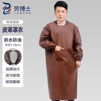 劳博士(LABORS) 皮革罩衣 反穿衣 防水防油服 餐厅水产洗车店劳保工作服 加厚加大 褐色