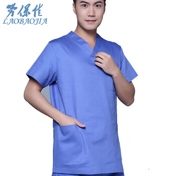 劳保佳 店铺技师服 耐高温工作服 手术室隔离衣短袖 男蓝色 S 可定制