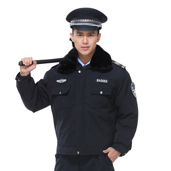 先锋连 冬季加厚保安服棉服黑色作训服保安防寒大衣安保物业工作服棉衣 斜纹大衣内胆不可拆卸 175