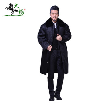 大杨291加长带拉链帽防寒大衣男 冬季加厚保暖工作服棉服保安毛领外套长款 3XL码 定制