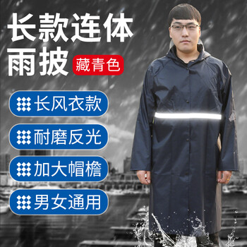 坚冠 加厚反光型牛津布男女时尚带帽非一次性雨衣 交通户外骑行雨披 藏青色XL码