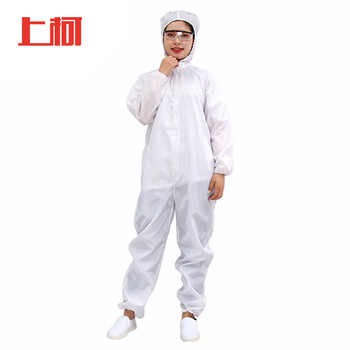 上柯 B2064 无尘服 防尘服喷漆服工业粉尘防护服连体连帽电子洁净无尘衣工作服 L码白色