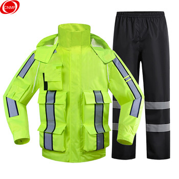 谋福 CNMF80162 执勤反光制服雨衣 荧光绿摩托车电动车路政警示制服 男女分体反光骑行套装 QX01 L 170可定制