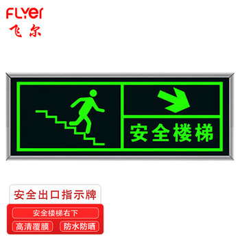 飞尔(FLYER)安全出口指示牌【安全楼梯右下】夜光墙贴地贴楼梯通道疏散紧急逃生标示贴消防标识标牌
