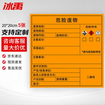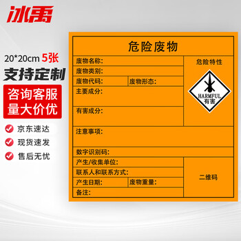 冰禹 危险废物标识贴 2023新国标危废标识牌 有毒易燃腐蚀20*20cm(5张/件) BYaf-609