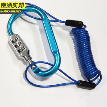 京洲实邦【大号蓝色挂钩式头盔锁+1.5米钢丝绳】密码挂扣车篮锁登山扣挂锁JZSB-9689B