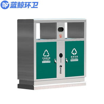 蓝鲸环卫 201不锈钢双桶D 户外垃圾桶不锈钢垃圾桶环卫分类垃圾桶室外果皮箱大号小区垃圾箱LJHW-1014