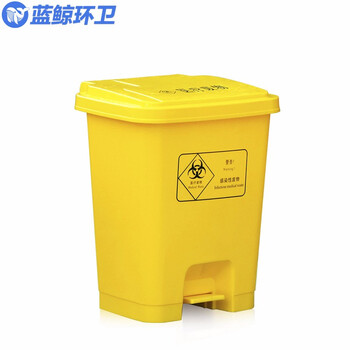 蓝鲸环卫【60L脚踏桶】医疗废物垃圾桶医疗周转箱黄色诊所医脚踏式废弃物锐利器盒塑料垃圾桶