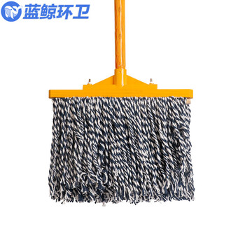 蓝鲸环卫【蓝白螺纹杆40cm】老式宽头棉线拖把LJHW-N0004