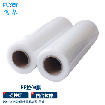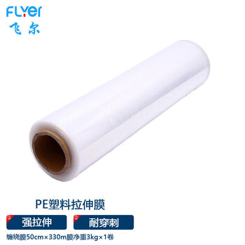 飞尔(FLYER)缠绕膜50cmx330m膜净重3kg 单卷 工业保鲜打包装搬家保护透明自粘PE塑料拉伸膜