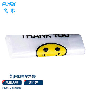 飞尔(FLYER)透明加厚背心手提袋购物袋 笑脸袋 100只/件(【29X45cm 中号3丝】2件起订