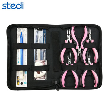 司特力stedi 进口珠宝钳套装六段钳diy制作绕线串珠手工钳无牙尖嘴钳剪线钳弯嘴钳套装 收纳包