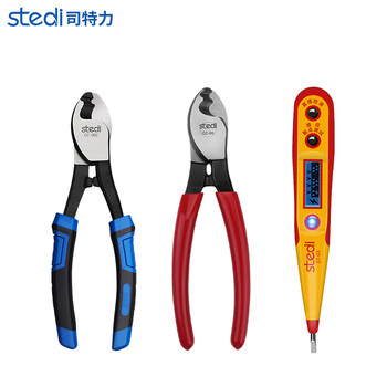 司特力 stedi 电工断线钳电缆钳剥线钳多功能剥皮器端子钳压线钳数显测电笔电工套装 CC-08C+ST-03