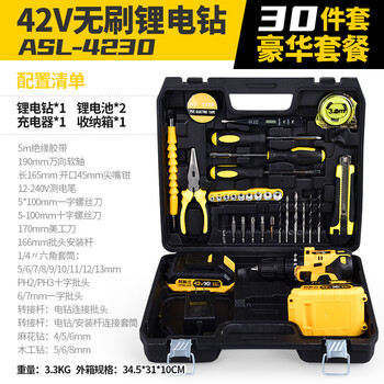 德国阿斯兰手电钻电动螺丝刀充电式电起子双速12v锂电钻工业手电钻 42V平推式锂电钻 ASL-4200【两电30套】