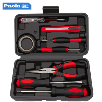 保拉(Paola) 9件套工具套装 螺丝刀十字一字 尖嘴钳美工刀测电笔绝缘胶带工具箱8060