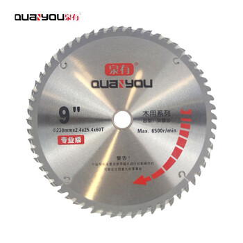 泉有(quanyou) 9寸木工切片附件合金圆锯片硬质合金木工锯片230(9")*2.6*25.4*60T木用