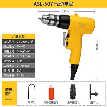 德国阿斯兰牌手枪式气钻强力大功率气转汽动电转手钻钻孔机气动钻 ASL-507