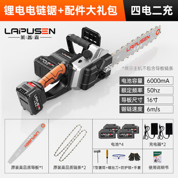 德国莱普森 充电式16寸电锯大功率锂电电链锯电动伐木锯手持农用果园修枝砍树链锯 16寸四电两充+2链条