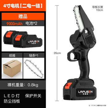 莱普森 有刷充电式4-6寸电锯小型锂电链锯迷你手电锯单手锯果园修枝砍树伐木锯 4寸【1电1充1链条】