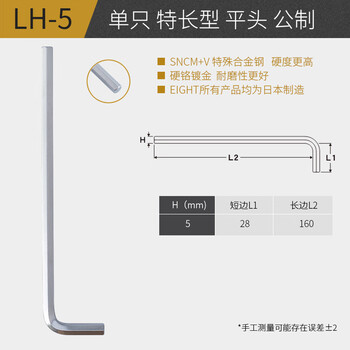 LH-5日本原装进口百利六角匙EIGHT-EX内六角扳手单支5mm公制平头特长多功能螺丝刀 SNCM+V特殊合金钢 现货
