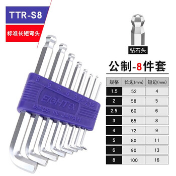 日本EIGHT-EX百利内六角扳手套装短尾加长球头进口工具 TTR-S8 TTR-S8 铬钒合金钢 现货