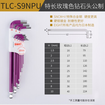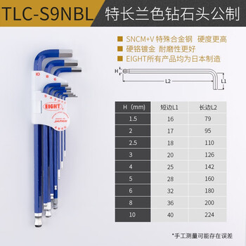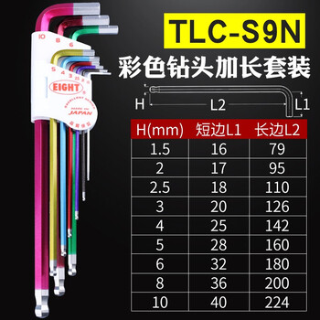 日本EIGHT-EX百利彩色钻石头内六角扳手TLC-S9N套装 TLC-S9N SNCM+V特殊合金钢 现货