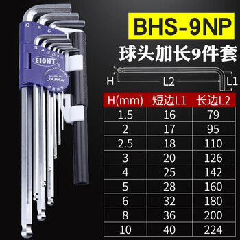 EIGHT-EX百利进口特长球头内六角扳手BHS-9NP六角匙套装 BHS-9NP SNCM+V特殊合金钢 现货