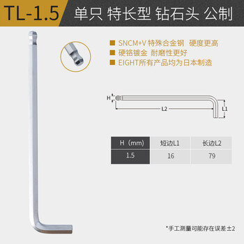 日本原装进口EIGHT-EX百利公制特长钻石头1.5mm内六角扳手单支TL-1.5多功能六角匙 SNCM+V特殊合金钢 现货