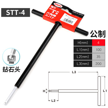 EIGHT-EX百利原装公制一体式T型钻石头STT-4特长内六角扳手单支4mm六角匙螺丝刀工具 SNCM+V特殊合金钢 现货