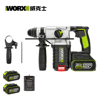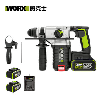 威克士(WORX)WU388锂电无刷电锤多功能无线电锤冲击钻专业电动工具 (20v/4.0ah两电一充)