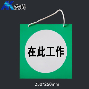 安科 在此工作警示牌 带挂绳挂牌 25*25CM pvc安全电力标识牌