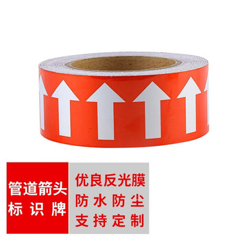 谐晟 国标管道流向标识贴 管道反光膜 导向指示标签箭头标贴不干胶贴 红底白箭头 5cm*20米