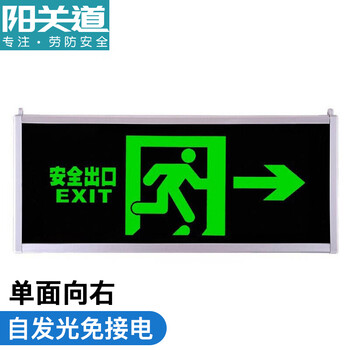 阳关道 安全出口指示灯 单面向自发光 消防通道指示牌免接电 应急灯逃生疏散荧光标志车库商场公司用