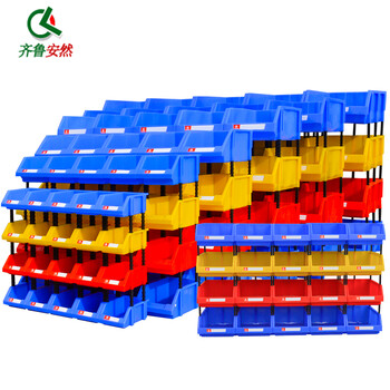 齐鲁安然 加厚斜口收纳箱 周转箱 五金分类盒 塑料箱 工具箱 零件盒 整理箱 蓝色X2#常规柱