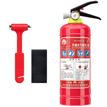 华消 灭火器 手提式干粉灭火器车用家庭用灭火器商用办公室商场消防灭火器 1KG干粉灭火器+固定带+安全锤