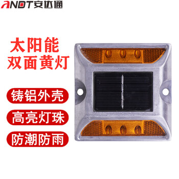 安达通 太阳能道钉灯 高速公路铸铝夜间警示频闪灯爆闪灯反光led警示灯 黄色闪灯