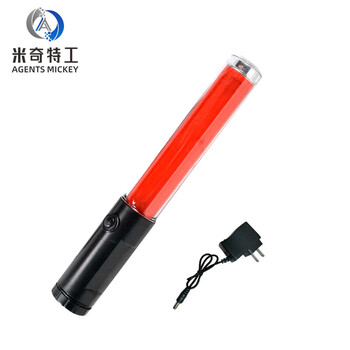 米奇特工 交通指挥棒 LED红蓝爆闪警示指引荧光棒 26cm红色指挥棒(充电款)