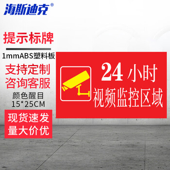 海斯迪克 24小时视频监控区域 单位企业宾馆酒店温馨提示警示标识牌 1张 15*25CM 1mmABS塑料板 HKZ-92