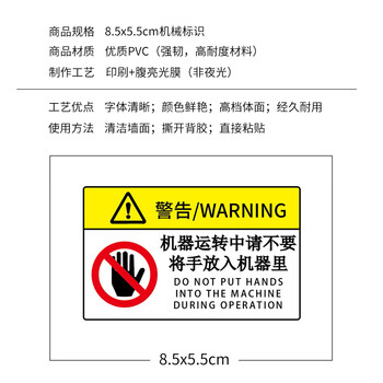 海斯迪克 机械设备安全标识牌警告标志贴纸 定做 85×55mm 机器运转中(15个起订)HK-581