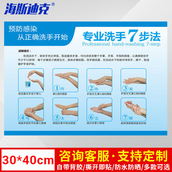 海斯迪克 HK-681 诊所洗手标识牌 七步洗手法墙贴 医院病毒宣传海报标示标识 经典款一30×40cm
