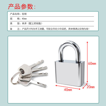 汇创佳(WHITERC)挂锁 加厚不锈钢防水防锈短梁防盗抗剪叶片锁头 40MM 单开三把钥匙