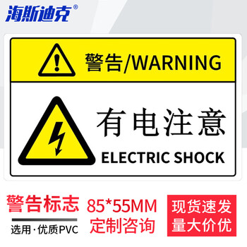 海斯迪克 机械设备安全标识牌警告标志贴纸 定做 85×55mm 有电注意(15个起订) HK-581