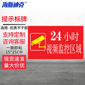 海斯迪克 24小时视频监控区域 单位企业宾馆酒店温馨提示标识牌 1张 15*25CM 不干胶贴纸 HKZ-92