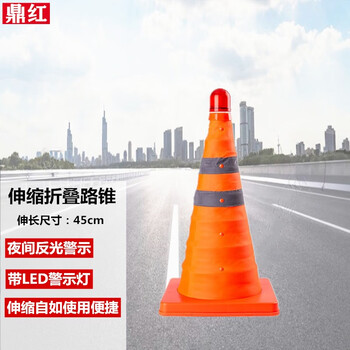 鼎红 伸缩路锥折叠锥筒反光锥三角锥车载便携交通应急停车警示伸缩路锥45cm带顶灯